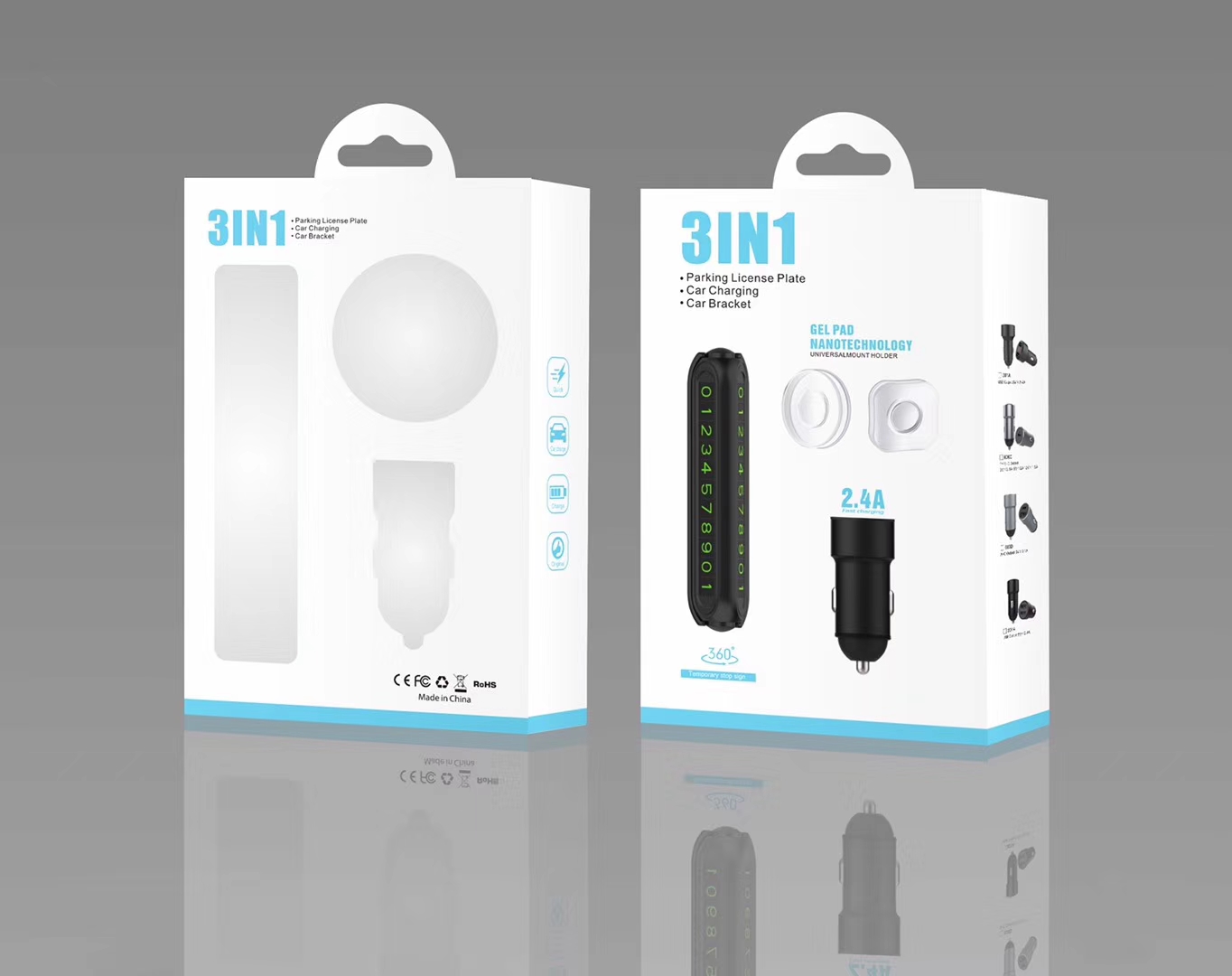 三合一禮品套裝(挪車牌+車充+納米支架)
