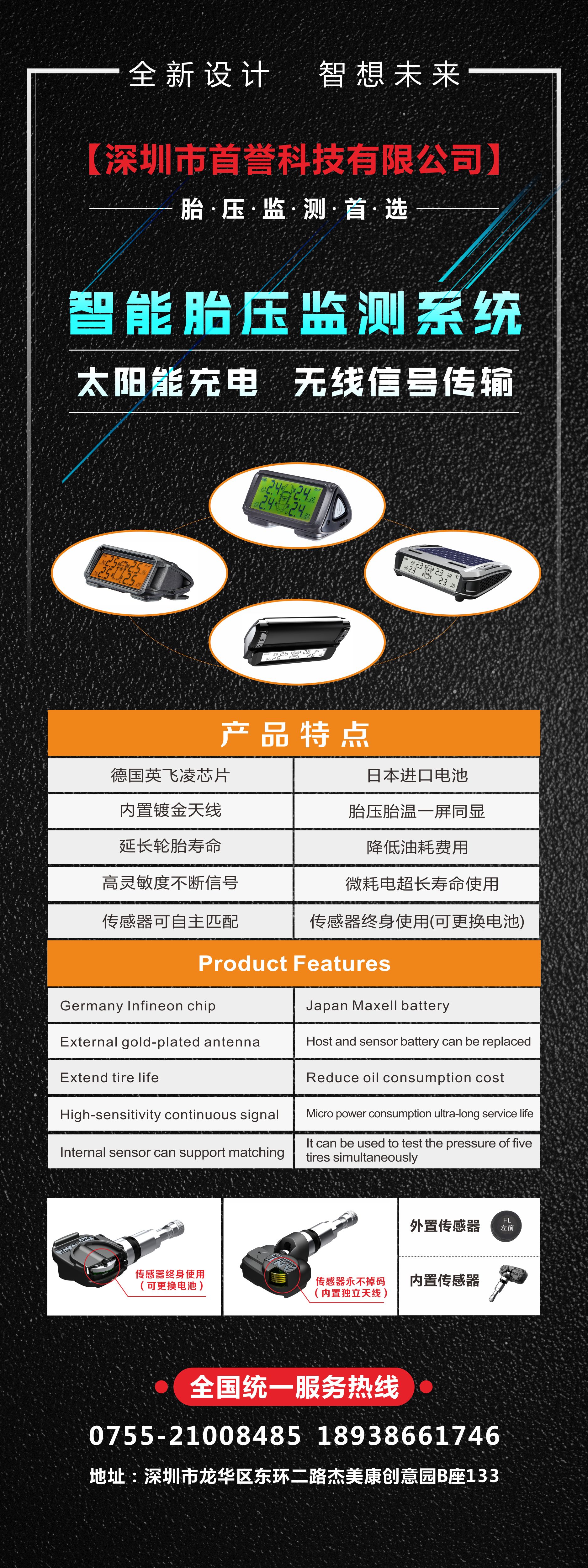 深圳市首譽科技有限公司(m.66974.cc)太陽能胎壓監測是在傳統胎壓監測裝置(無線胎壓監測器)上的一次里程碑式的更新,由太陽能顯示屏、4個壓力傳感器及溫度傳感器組成。