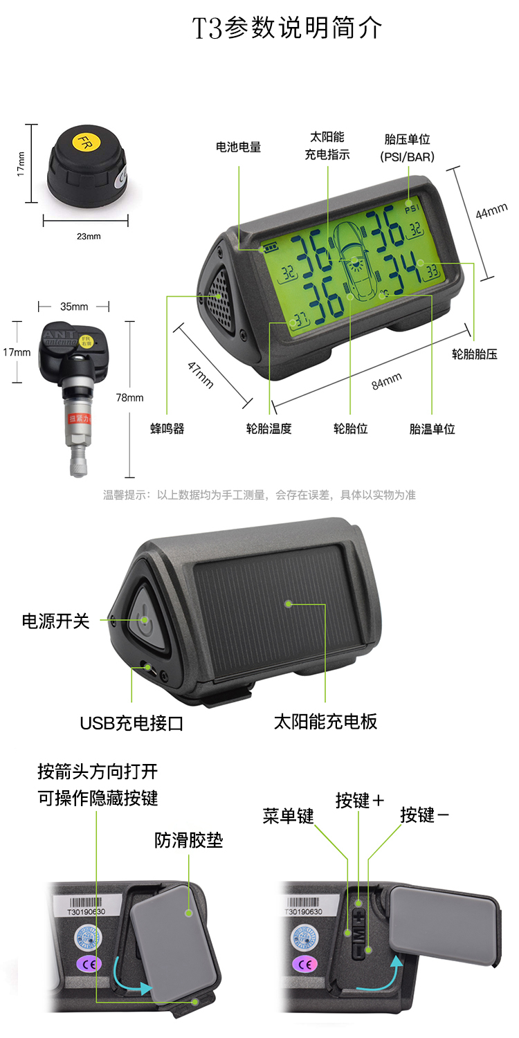 6、首次安裝需要車輛運行到時速20公里以上才開始顯示數據,正常情況下只顯示胎壓數值。